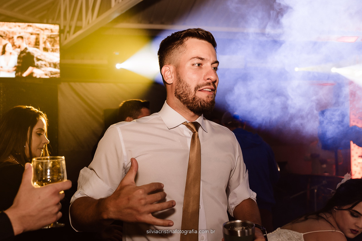 Era para ser um casamento no final de tarde, com o sol se pondo. Porém, a noiva atrasou, não tinha energia no espaço devido acidente de veículo na rua. Foi um casamento com muita adrenalina e muita emoção, e mesmo assim eles não deixaram de contagiar a festa com suas energias positiva!