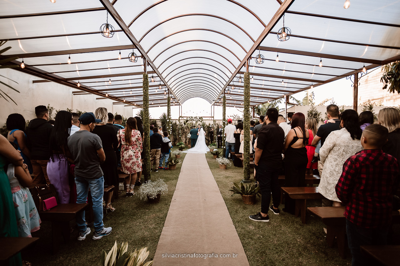 Cada vez mais casais optam por fazer a cerimônia no mesmo local da festa de casamento, o que pode facilitar e muito em termo de economia e deslocamentos.