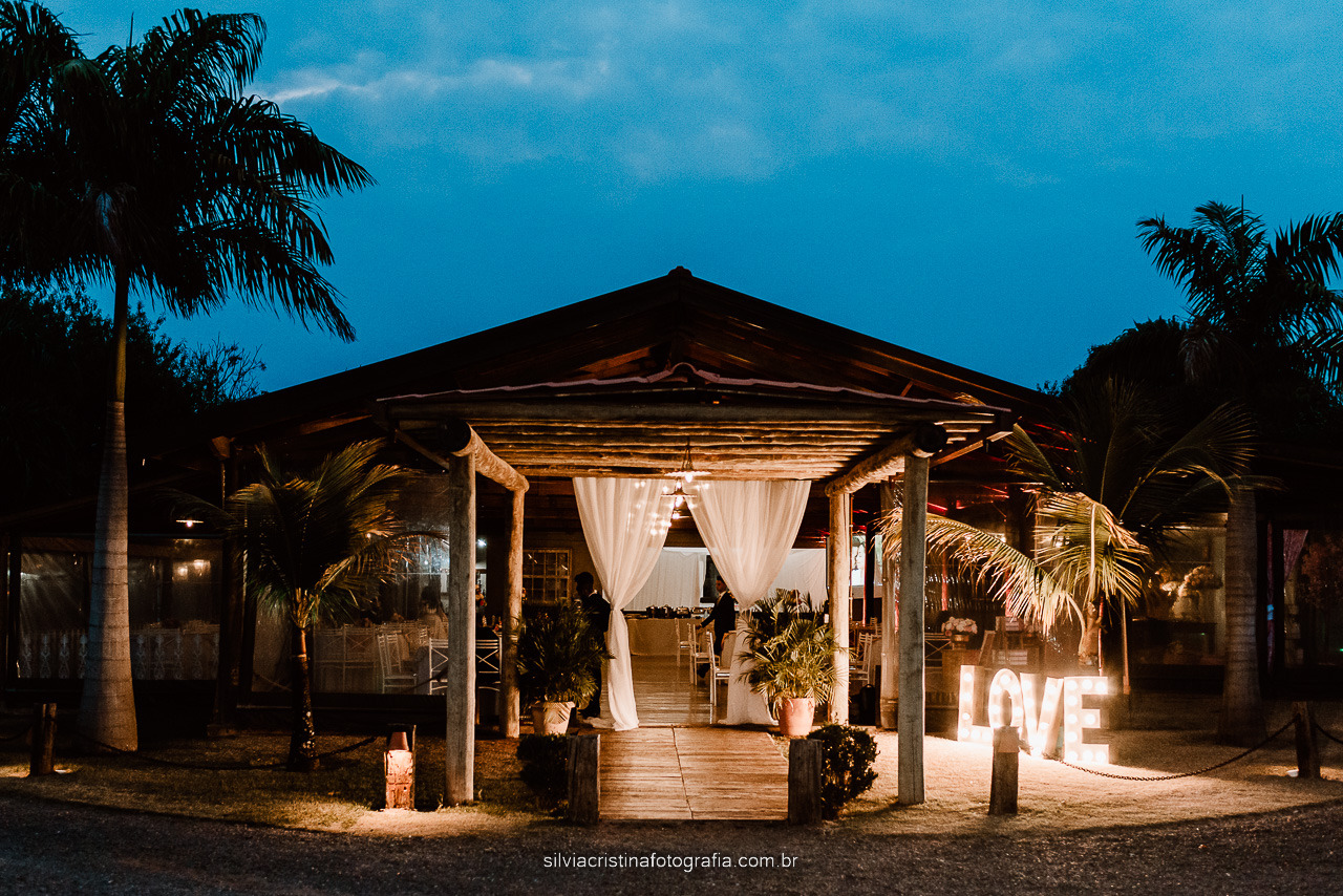 Possui uma estrutura ampla e muito bem cuidada , contando com espaço em area livre para fazer seu casamento ao por do sol e local coberto para fazer sua festa de casamento sem se preocupar com o tempo.